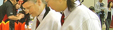 ハンバーガのパテを焼いている父兄達。何時も家でバーベQをやっているのか、何となく手つきが慣れていて楽しそうな感じがします。